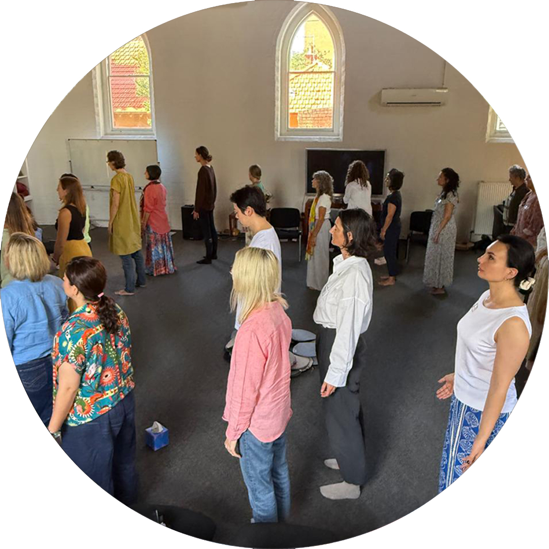 Family Constellations and somatic inquiry for healing symptoms of trauma and stress.